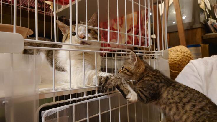 ぼんちゃんと隔離期間が被っていたので、ケージ越しに会わせてみたりもしましたが、お互いそんなに興味はなかったようです(笑)
