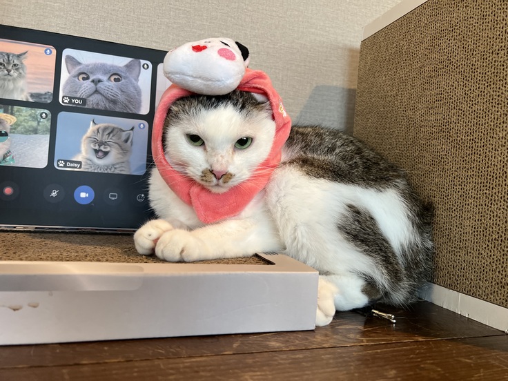 あられチャンはお客さん大好きになって、高い鳴き声で皆さんを魅了し、ファンの多い正社員猫になりました。