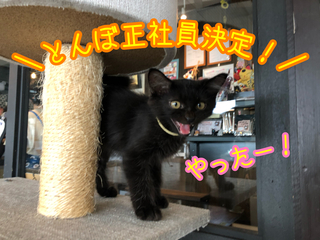 黒猫が多かったのでみんな魔女の宅急便のキャラクターから名前を取り、その中から選ばれたお名前のひとつが『トンボ』です。虫ではなくこちらが由来なんです☆