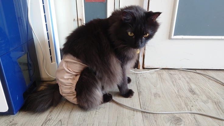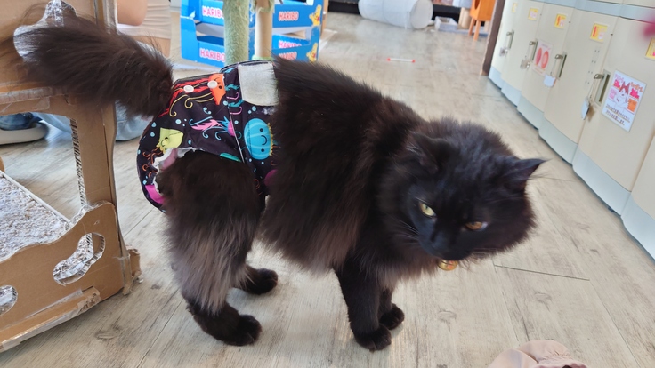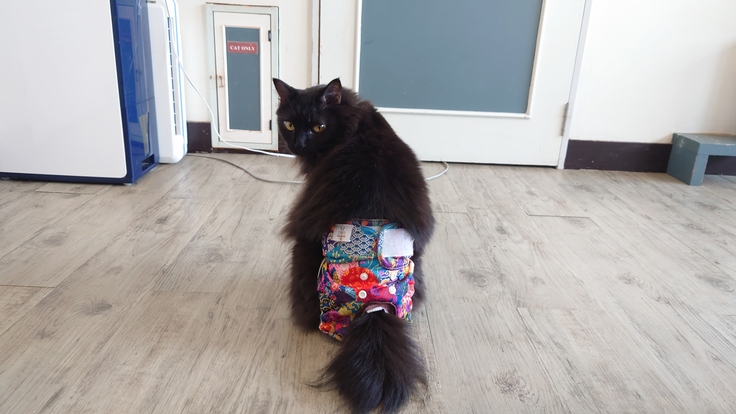 そんなとんぼ店長はフロアでは紙パンツ+犬のメス用マナーパンツを重ね履きしています。