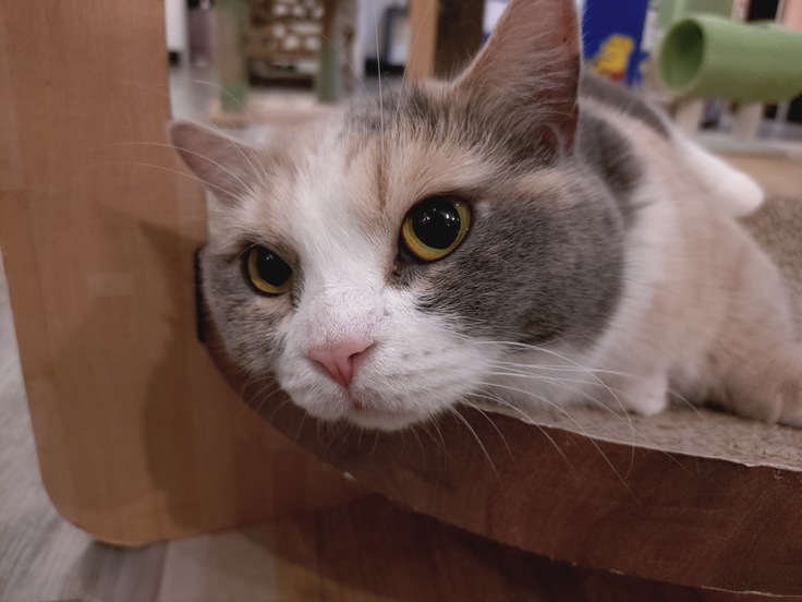 フロアに出たまる子はまる子!と呼ぶと必ず、んにゃっと可愛いくお返事してくれます。可愛いくて何回も呼んじゃいます笑