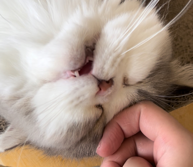 ブリーダーさんからも「茶屋で幸せに過ごしてほしい」と快く託され、今では立派な正社員猫としてお客様を迎えています。
