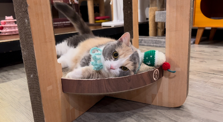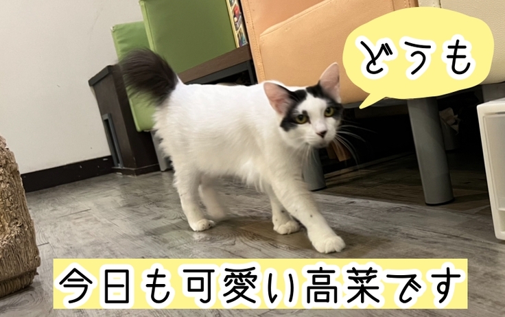 短いしっぽがチャームポイントの「高菜」推しスタッフです。
