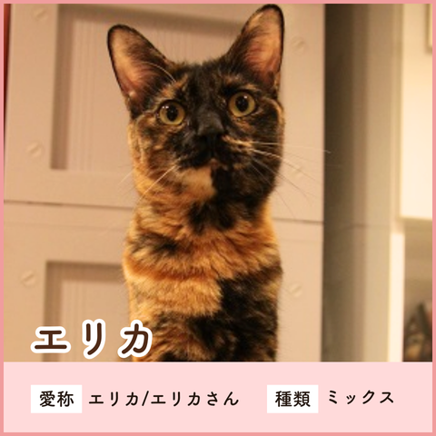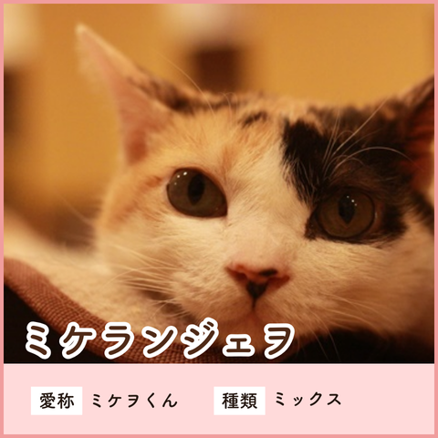 コメント:幸せをもたらすと言われている、三毛猫のオスです。お膝に乗ってくれたらい いことがあるかも!?自分で目を引っかいてしまうのでカラーをしています。