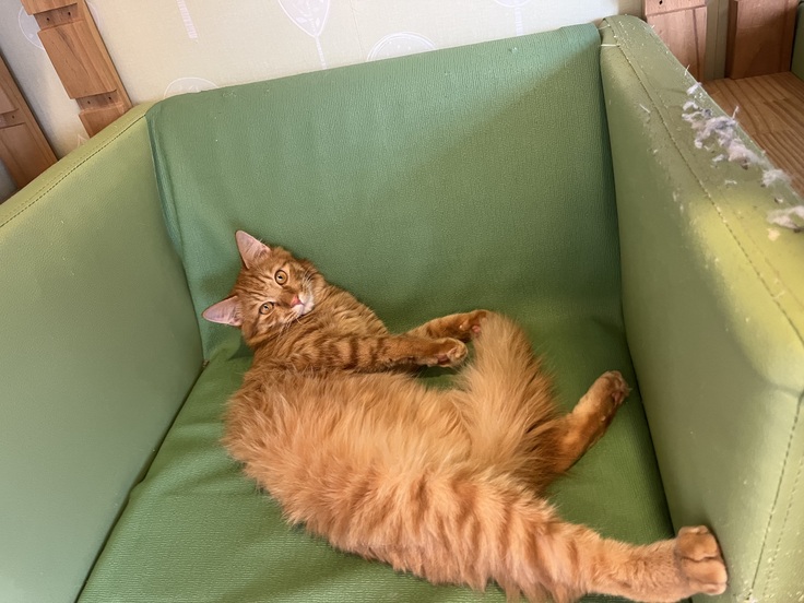 甘えん坊ですぐ膝に乗ってきます。寝転ぶとすぐに上に乗ってきます。