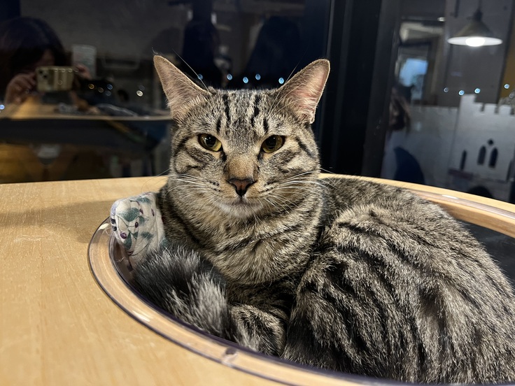 猫まるカフェで保護しそのまま猫スタッフになっていた別館に在籍の三毛猫「こころ」さんが