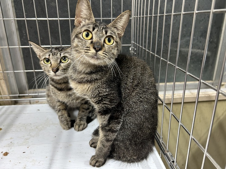 熊本愛護センターでは引き取った時に写真を撮っているのですが、彼女たちは成猫なのにガリガリで2kgほどしかありません。これは生後半年の猫たちより軽い体重です。体長も少し長めなので余計にガリガリが目立つ写真でした。