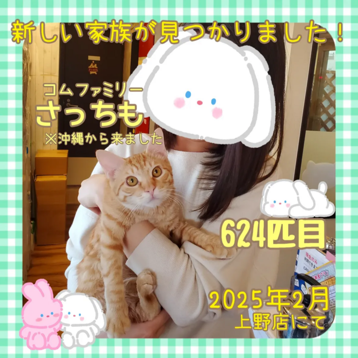 こむママファミリーの次男さっちもが新しい家族の元に出発しました!
