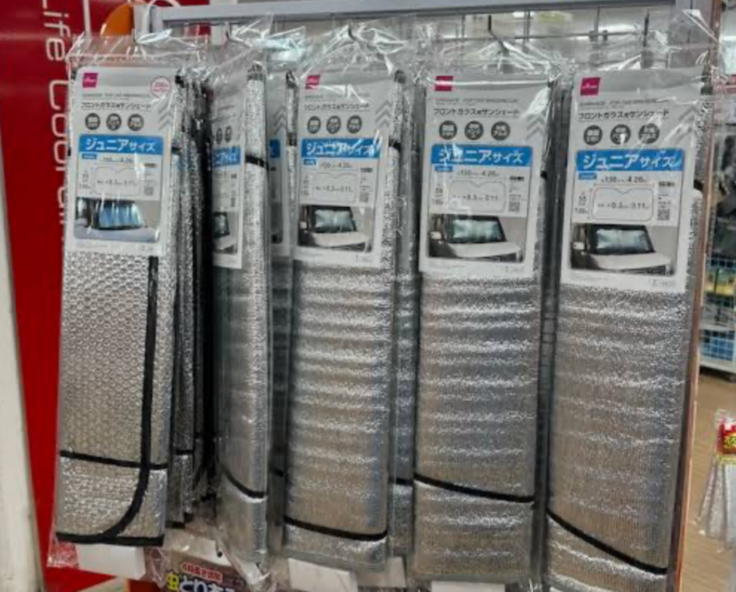 まず100均などで販売している車のサンシェードです。暑さ避け、寒さ避けとなるので便利です。使い方は下記の写真を見てください。