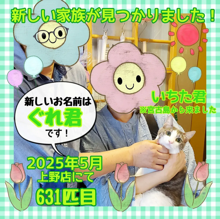 (隔離終了後、沖縄猫まる茶屋にて預かり8月に上野に引越しをしてきています)