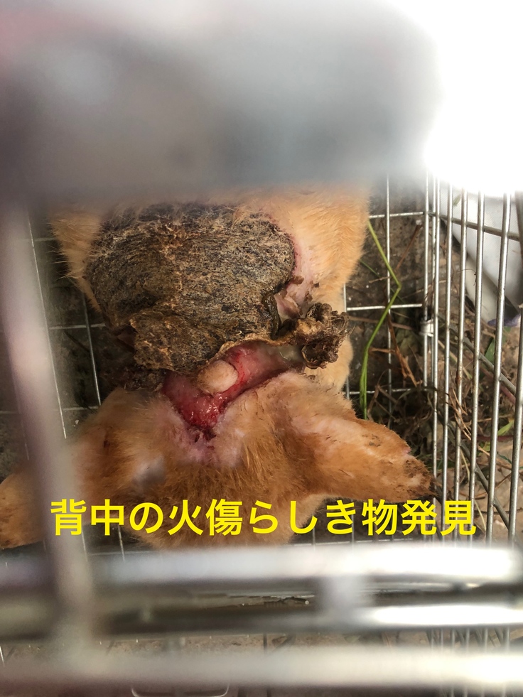 背中に酷い傷を発見保護活動している知り合いに画像を送って、「これは疥癬か何かですかね?」と聞きました。