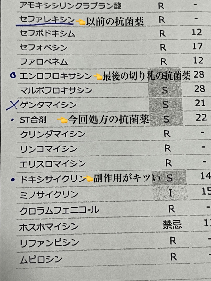 その結果、4種類の抗生剤(1つは塗り薬。)しか効果がない事が分かりました。