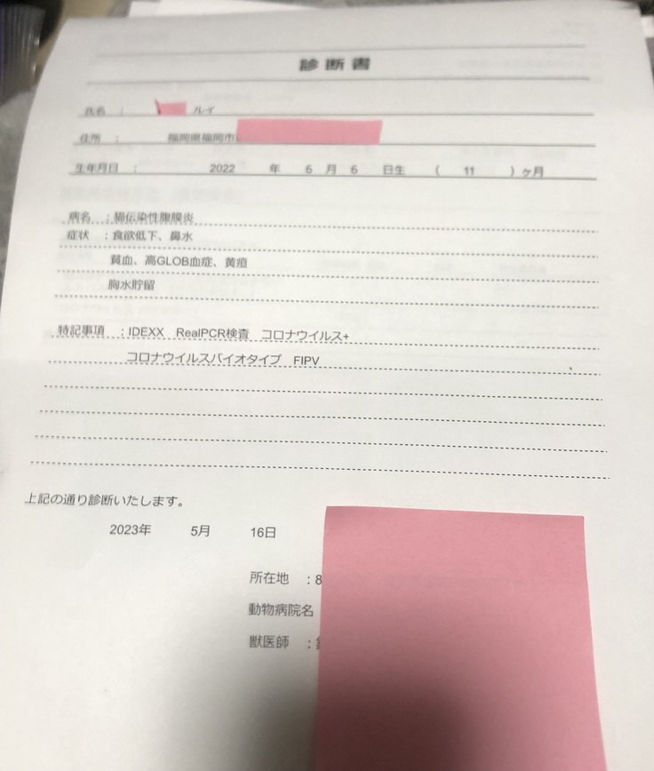 ページ上に掲載している診断書や、診療明細書などの資料は、全て動物病院から掲載の許諾を得ております。