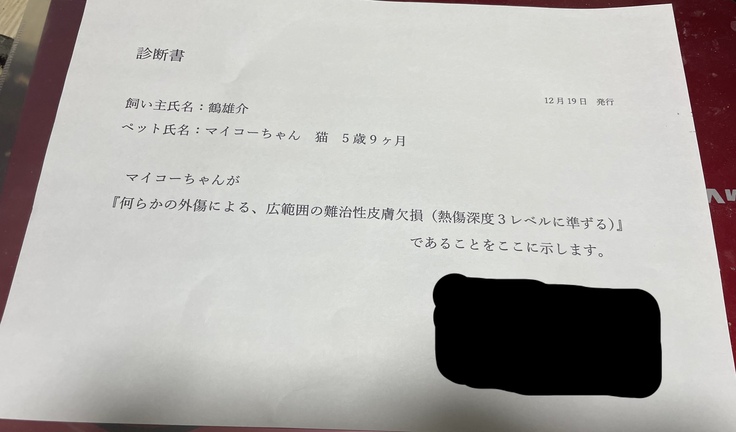 2023年12月22日「熱傷Ⅲ度の火傷を負った野良猫ボスマイコーを助けたい」のプロジェクトを公開させて頂きました。