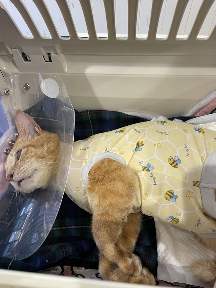 かなり早い時間で終わり、15時30分には急遽買いに行った術後ウェアを届けた時、マイコーは目を覚ましていたので、先生方は焦っていました💦
