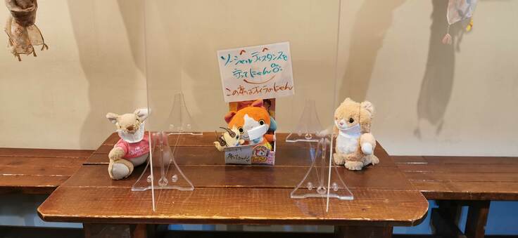 コロナ禍でのソーシャルディスタンスや、マスク飲食の推奨にもぬいぐるみたちが活躍してくれた。