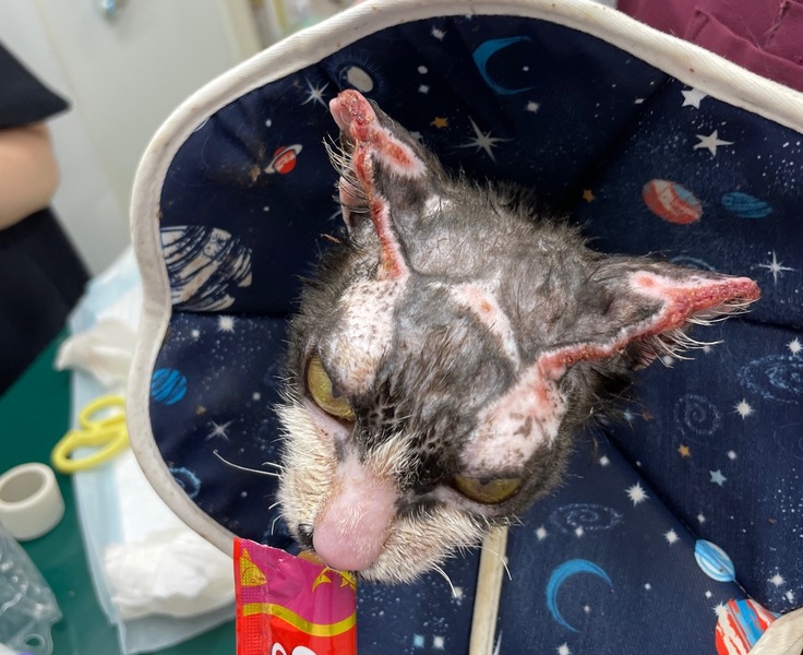 燃え盛る炎の中、とてつもなく痛く、本当に怖い思いをしながらも、奇跡的に生き残ってくれた子が、今また元気になるために頑張ってくれています。