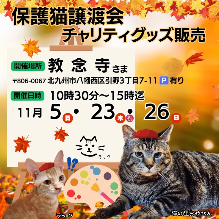 猫の里の譲渡会は 毎月教念寺様で会場をお借りしています。