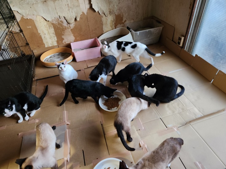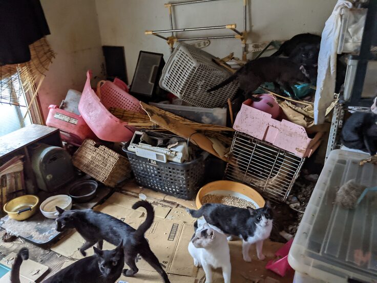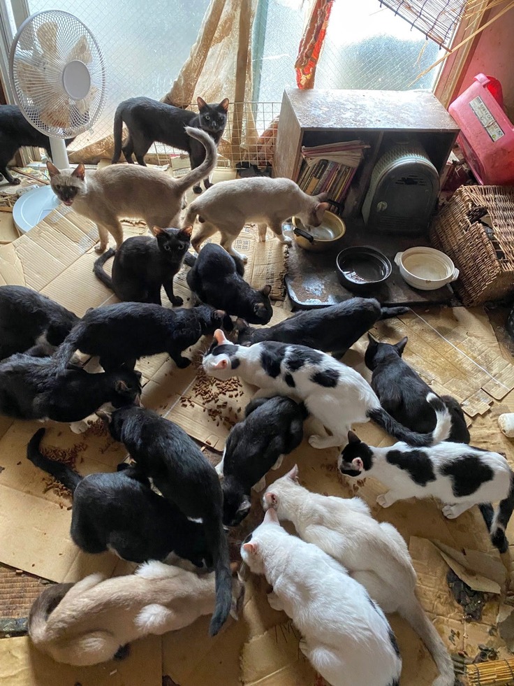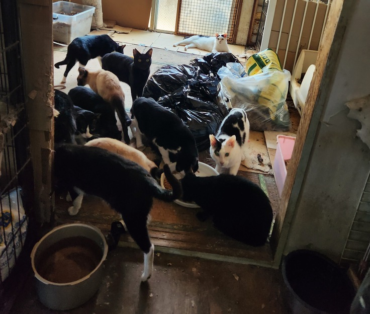 その後も定期的に行っており、現在はこの状態で猫たちが25匹ほど暮らしています。
