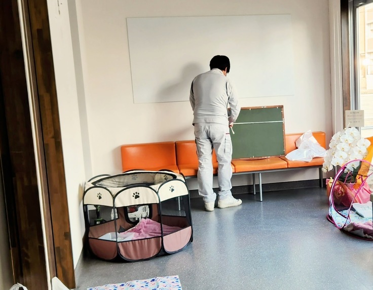 こちらの男性メンバーは寄贈いただいた絵をかける作業をしてくれています。