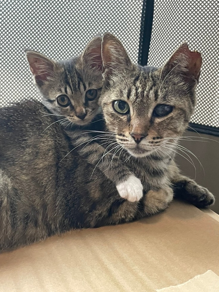 皆様、こんにちは。預かりボランティアの大本です。もともと我が家にはまだ小さな子猫の時にカラスに突かれ瀕死の状態で保護をして11歳になった兄弟と、生後数時間でまだへその緒が残った状態で道に落ちていた兄妹が居ました。
