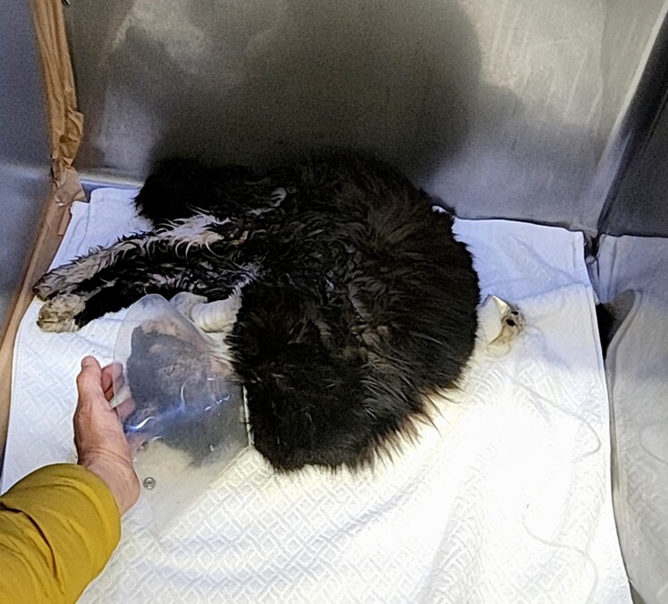 顔から前足にかけての大きなケンカ傷で、皮膚の縫合が必要でした。