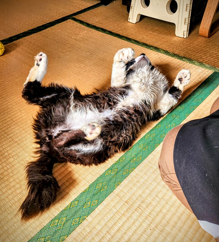 早く撫でろと お腹を見せるスパイス( *´艸`)