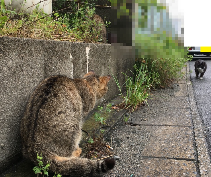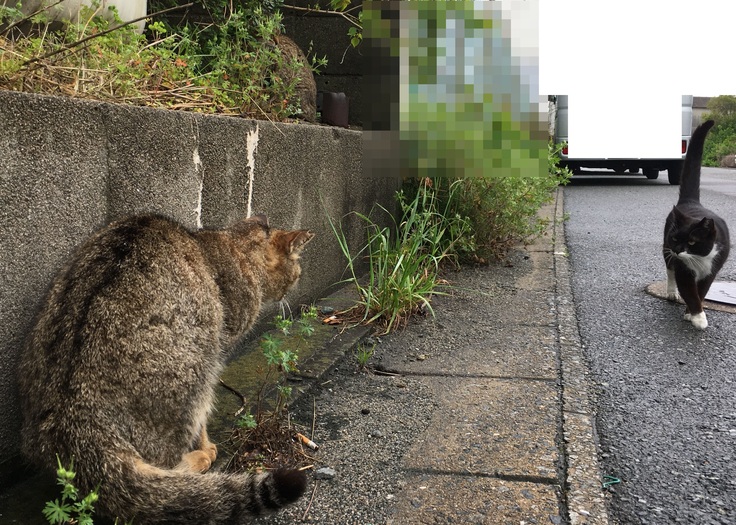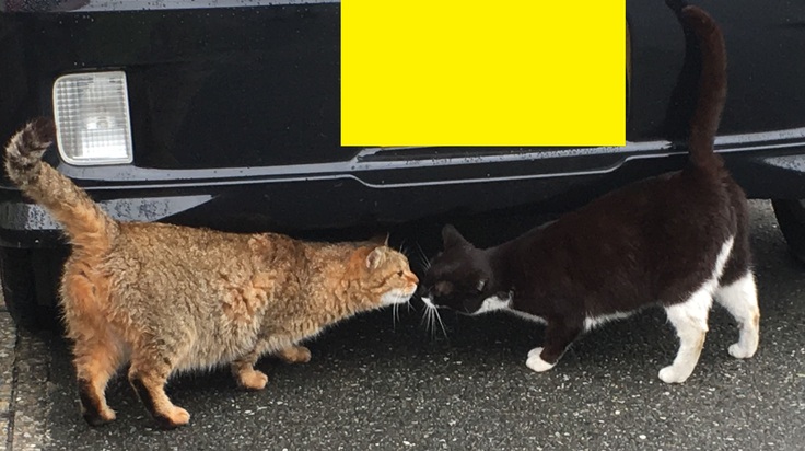 キジ白は他の子には唸り散らすところ、ぽぅちゃんには気を許したようです。