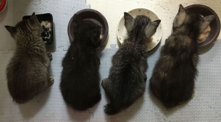 4匹は無事に育ち、8月現在、本当なら里親募集をかけたいところなんですが、諸事情によりまだできていません。