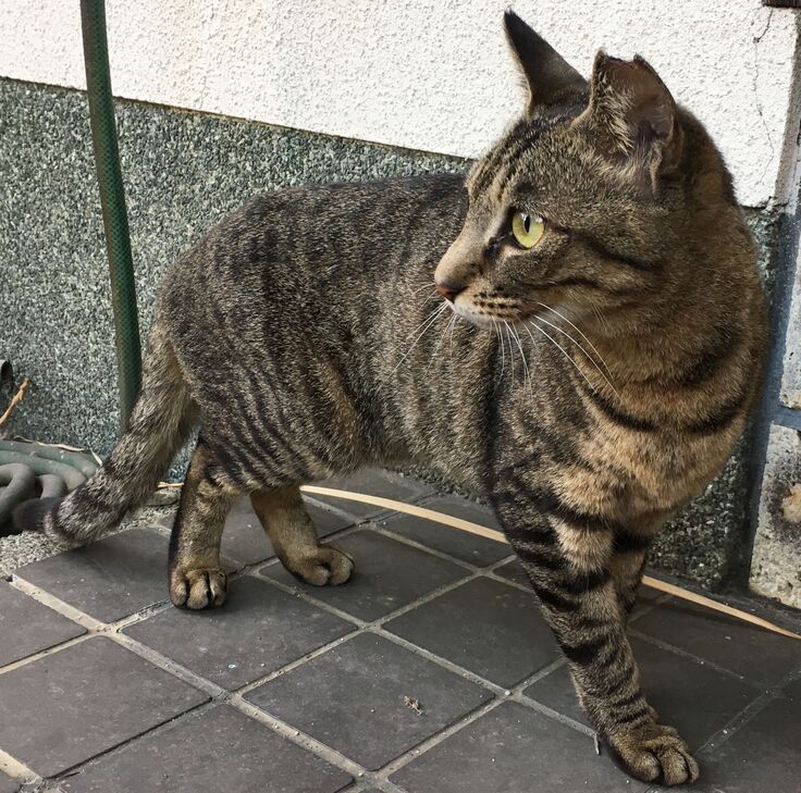 病院へお迎えの途、ジブリ邸にて、心優しい古参の大茶トラ。