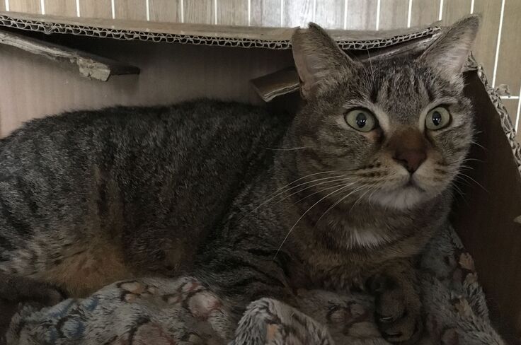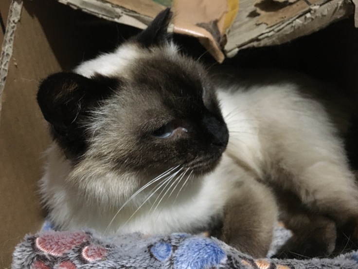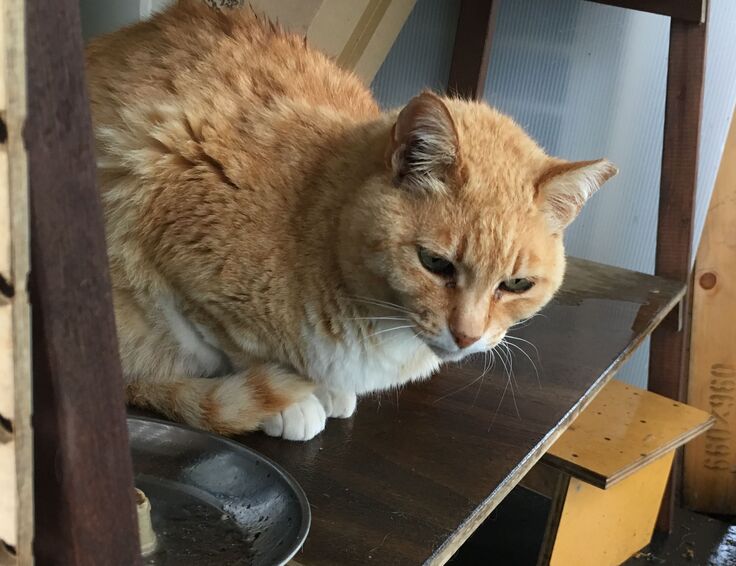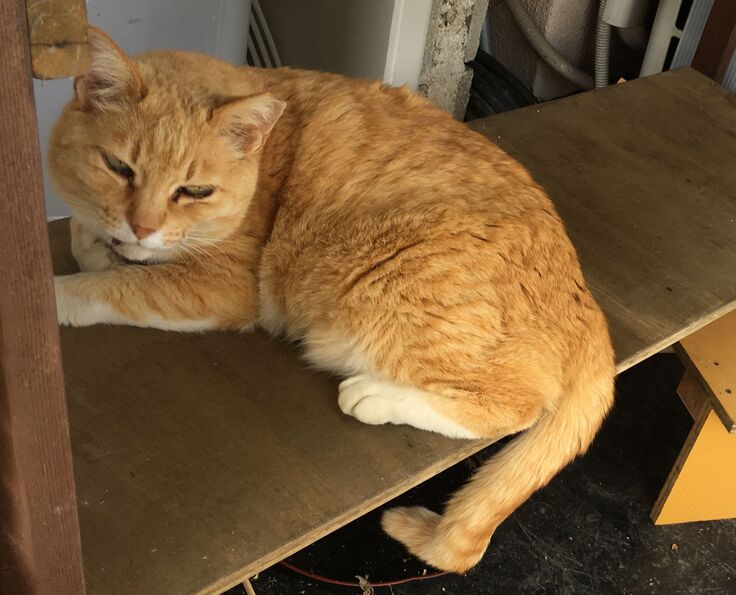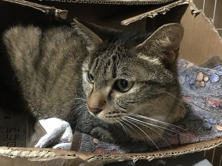 避難所の保護猫りおぽん。