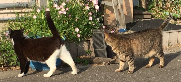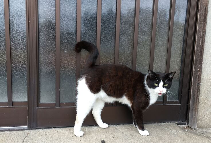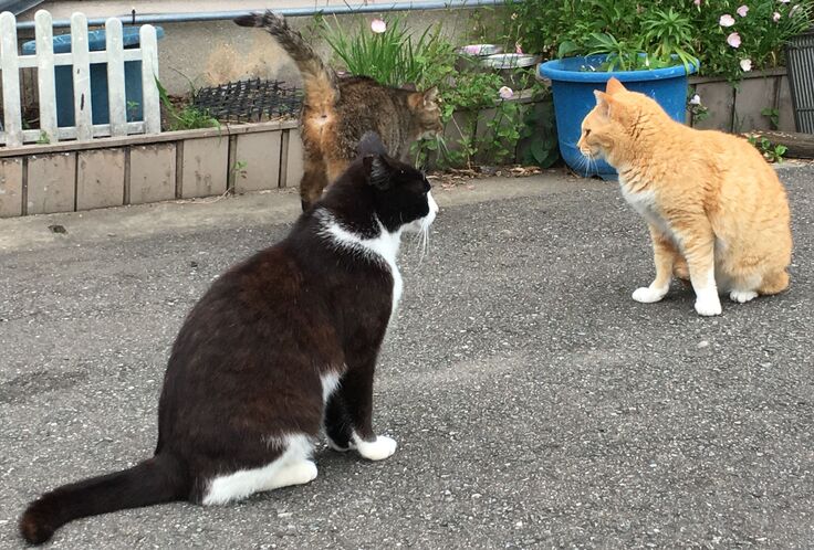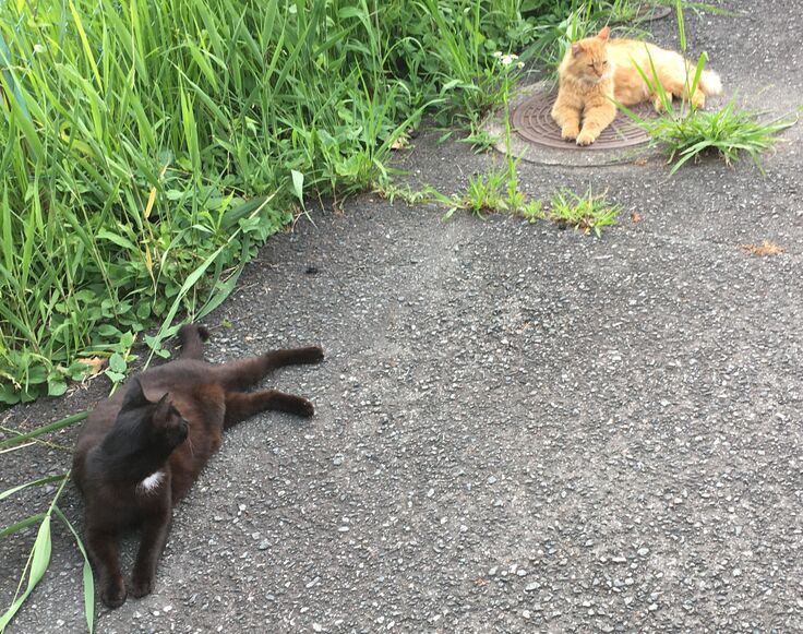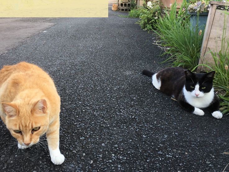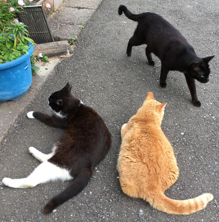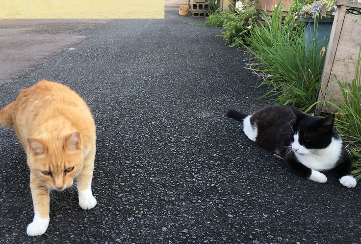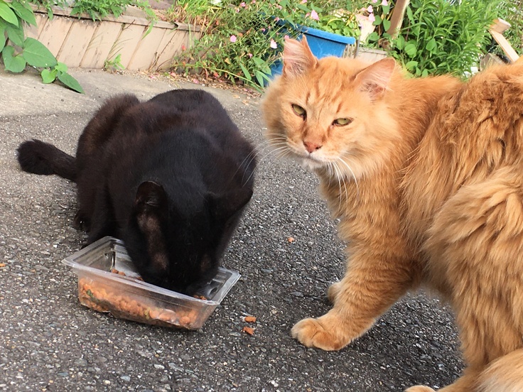 りおぽんは時々脱走し、お外猫とは面識がありますが、新入り黒にはいじめられて戻ってきます。
