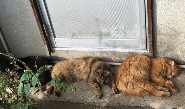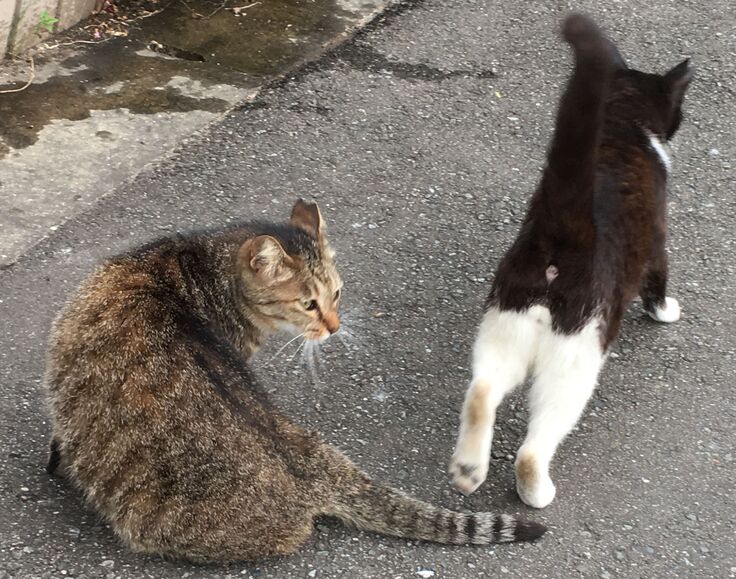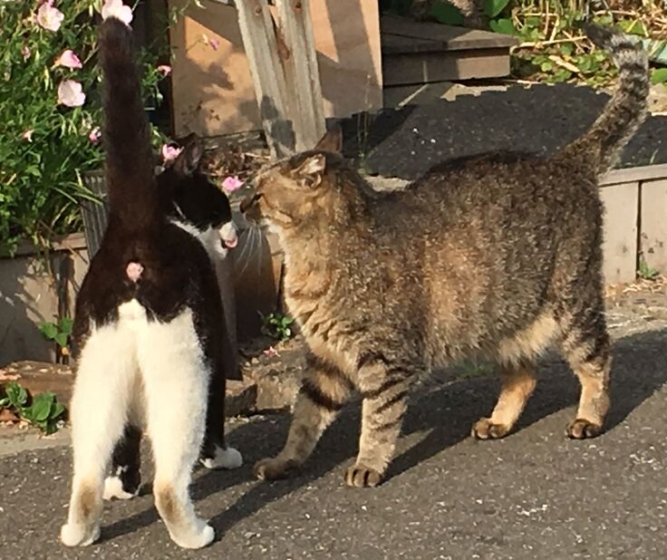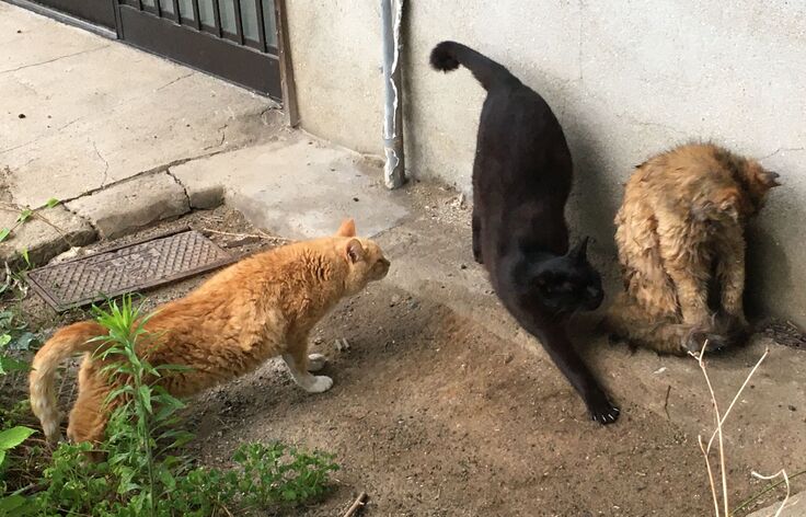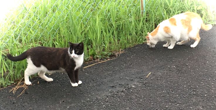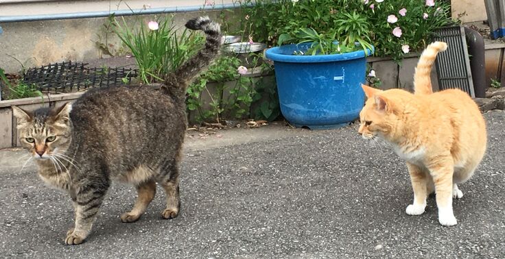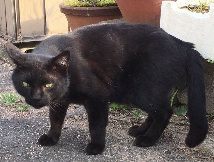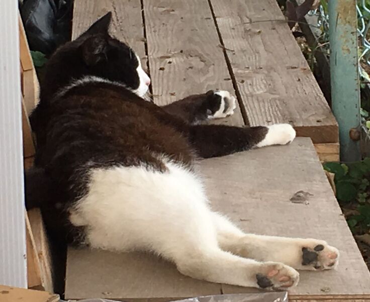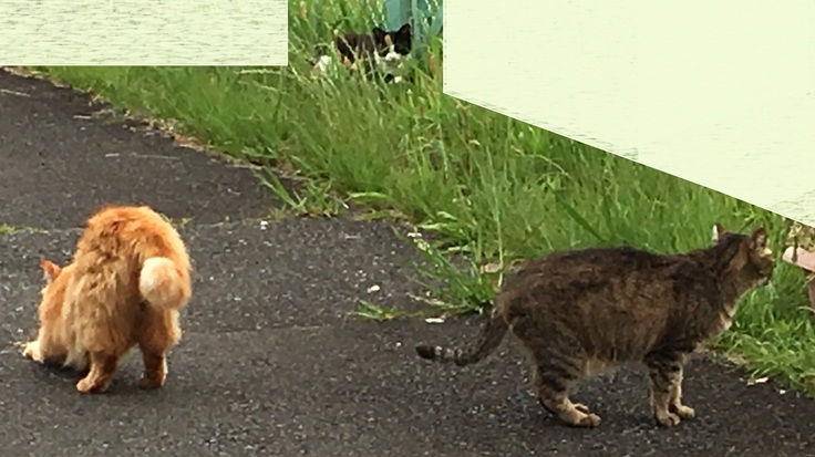 りおぽんは時々脱走し、お外猫とは面識がありますが、新入り黒にはいじめられて戻ってきます。