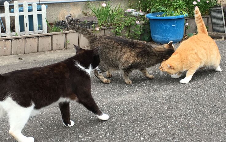 この雨の夜は、他場所の猫たちに大きなトラブルが起きたようでした。