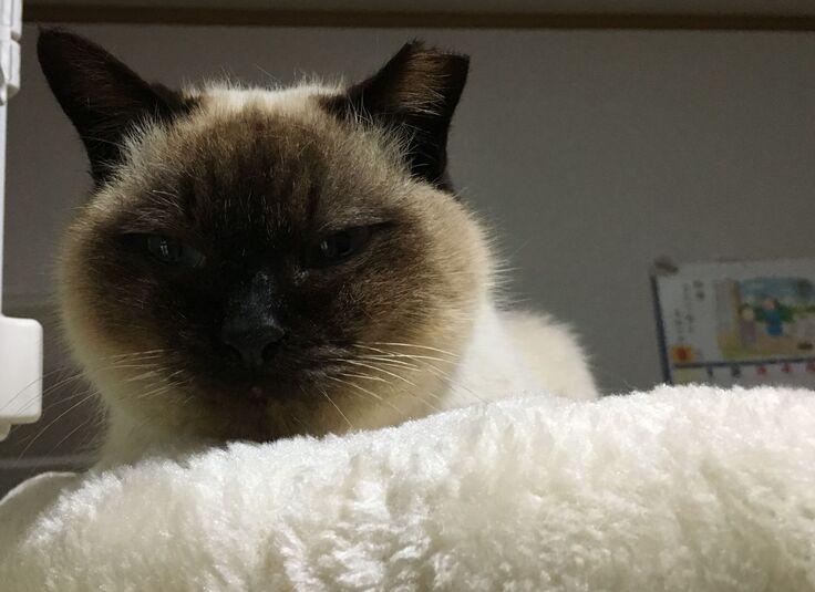 その後、自家点滴を何回かやってみましたが、いつもは柔らかくつまめる皮膚が、シャムたんの恐怖心が強く緊張してがちがちになり、つまめる皮膚がなくなり、点滴針を刺すことができません。