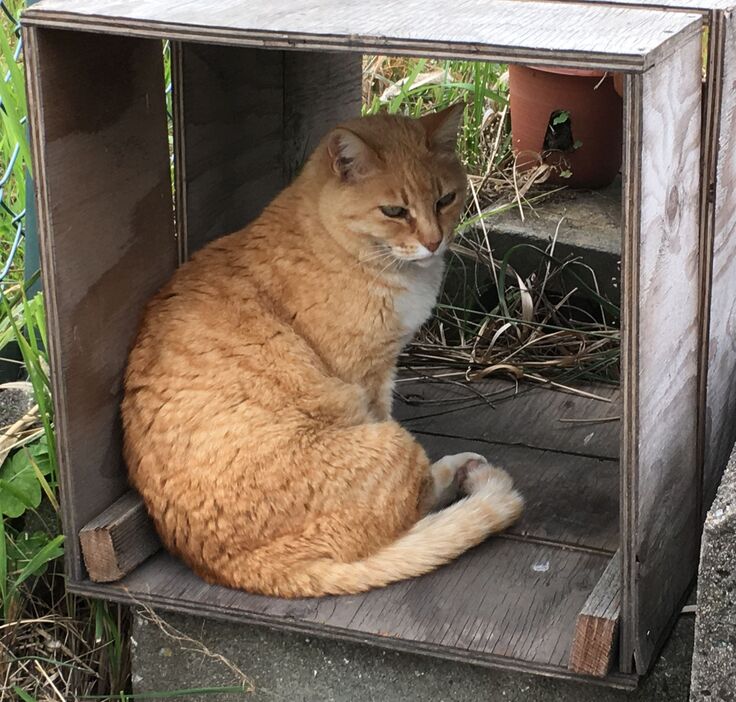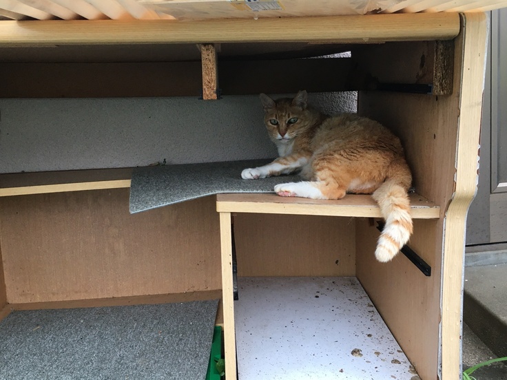 避難所室内に入れる猫の数は限られていますので、室外にも隠れる場所を赫々用意したいです。