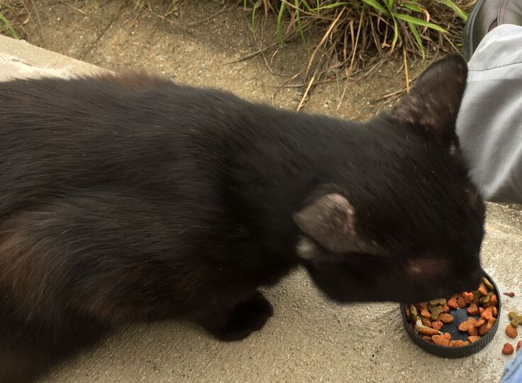 新入りの黒、私を待ってくれるし、甘えた声で出てくるし、呼んだらついてくるし・・・