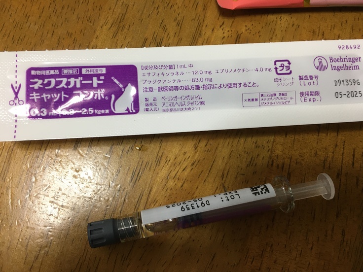 仔猫とすずめとりおぽんにも、このお高いお薬を点薬。