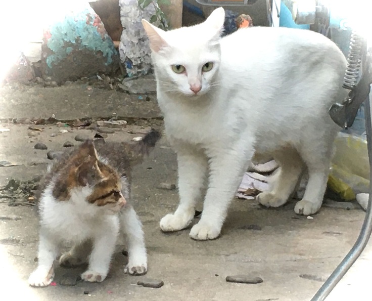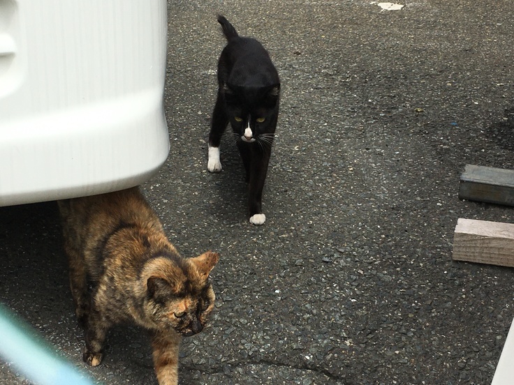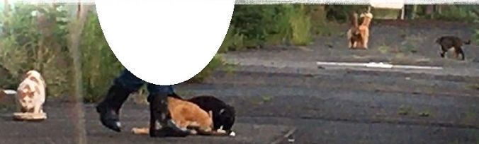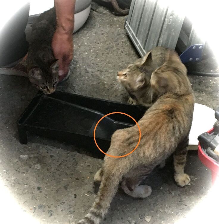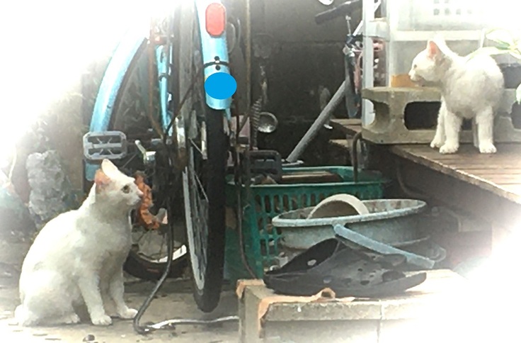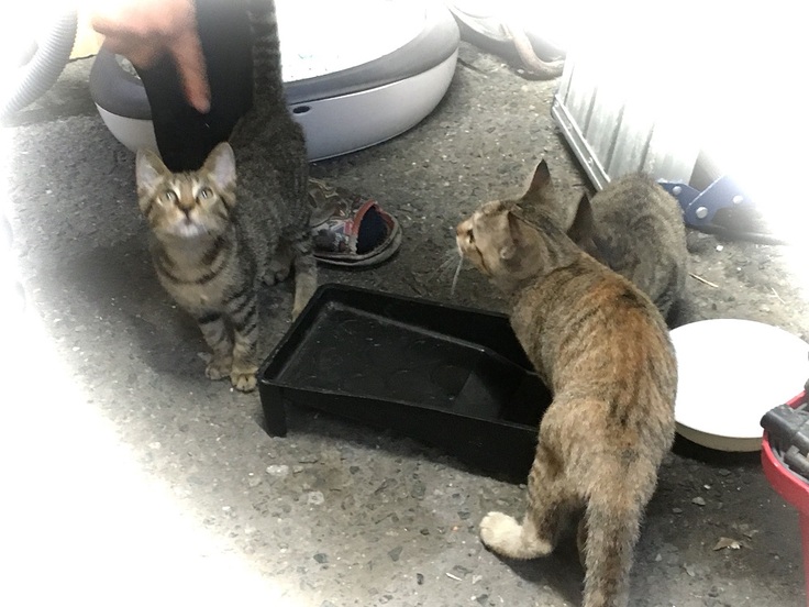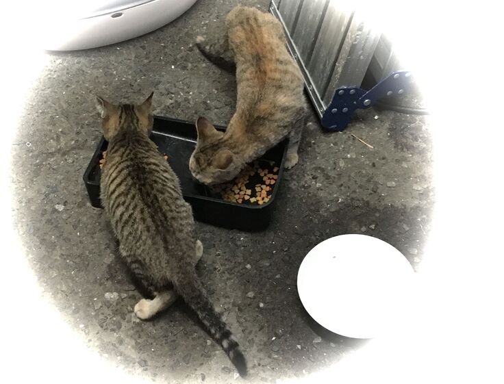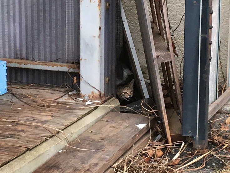 社長に(場所②には社長が何人もいます)聞くと、事業所兼倉庫に、野良猫がやってきて三匹の赤子を産み残していったので、エサやりをしているとのことでした。