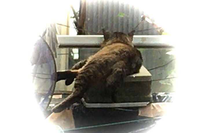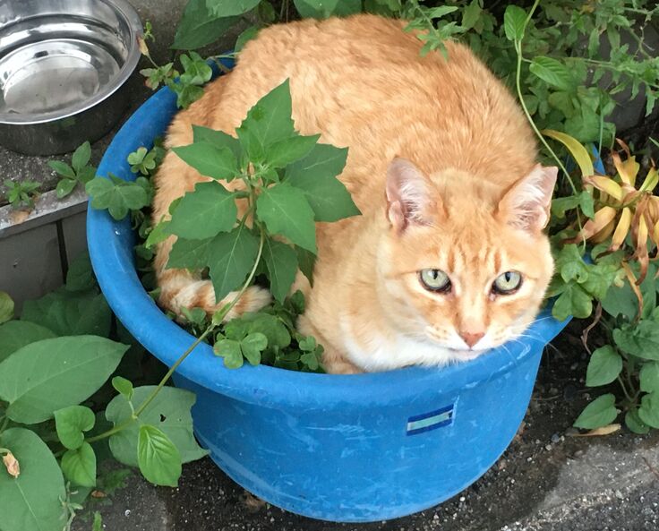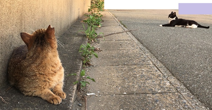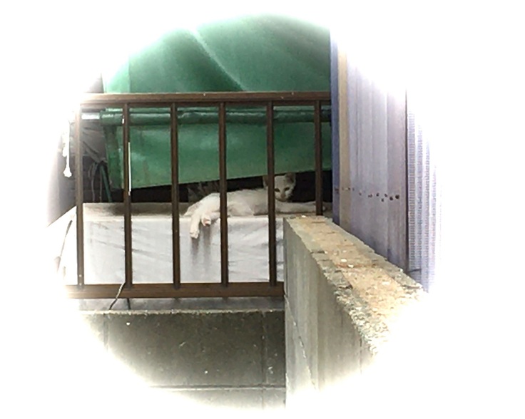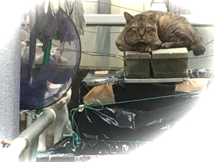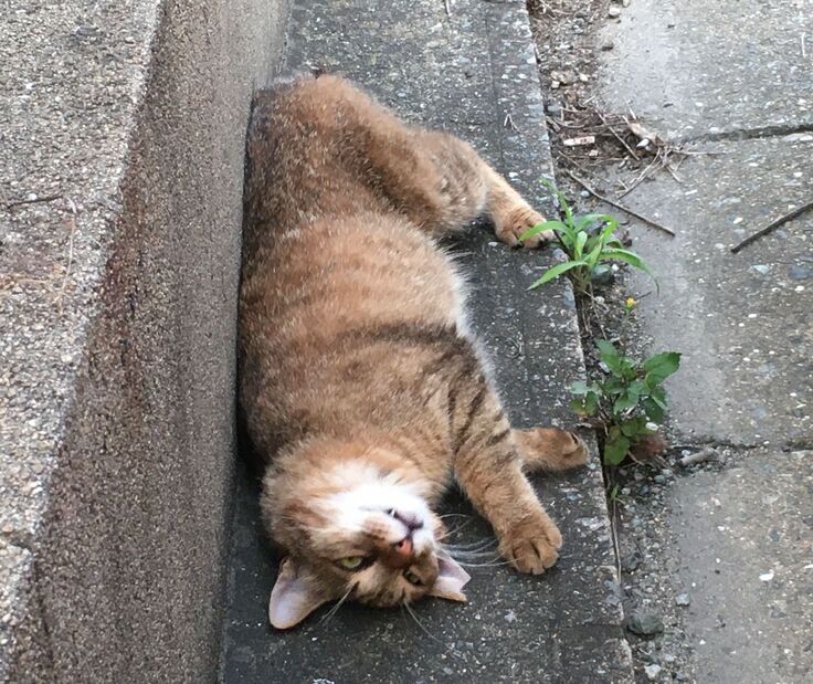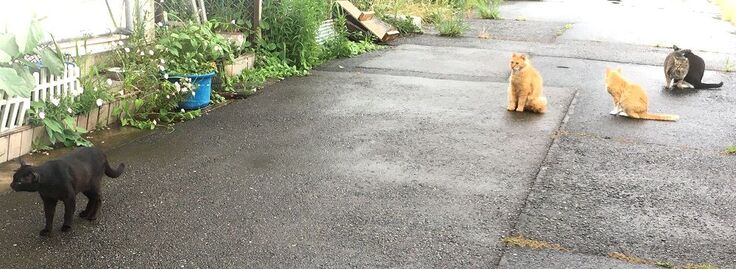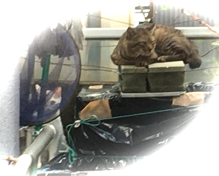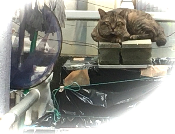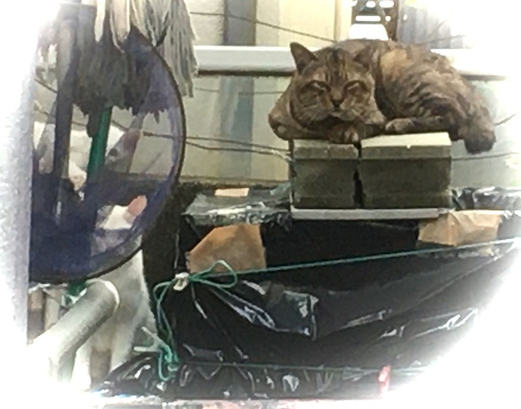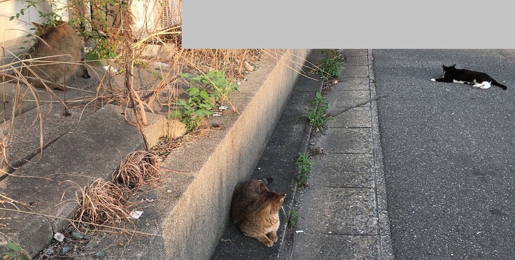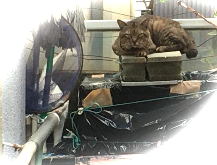 昼間は直射日光を受けて焦げるので、この時間にしましたがやぶ蚊いるし猫いない。