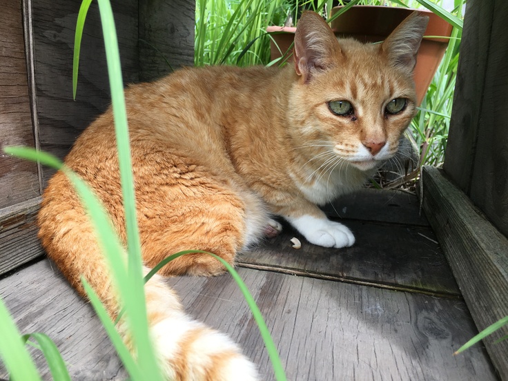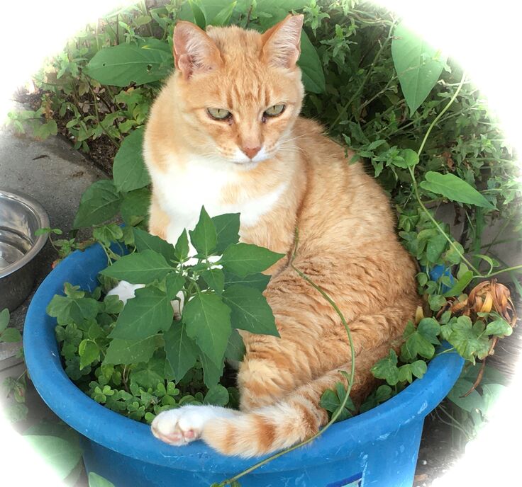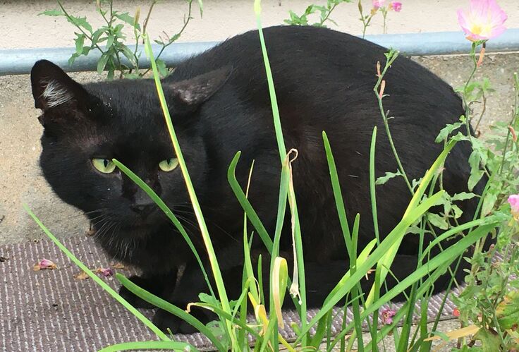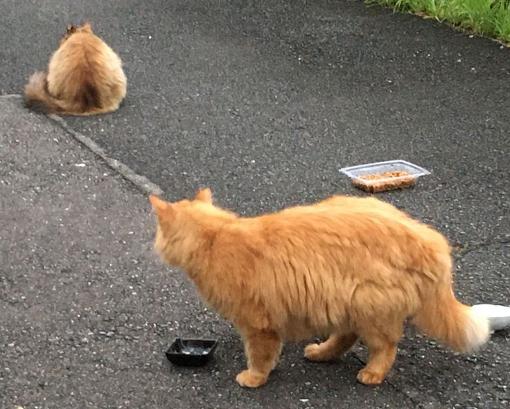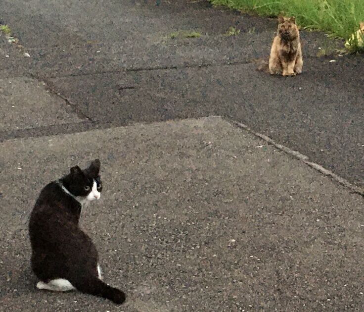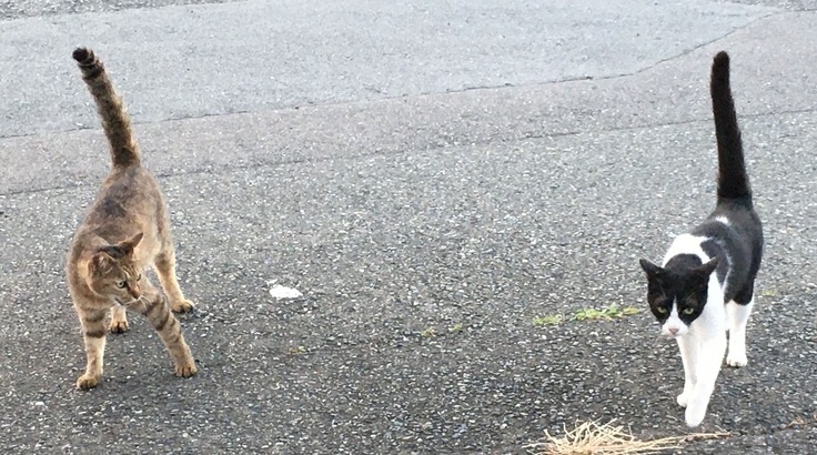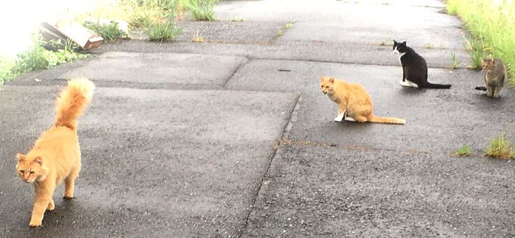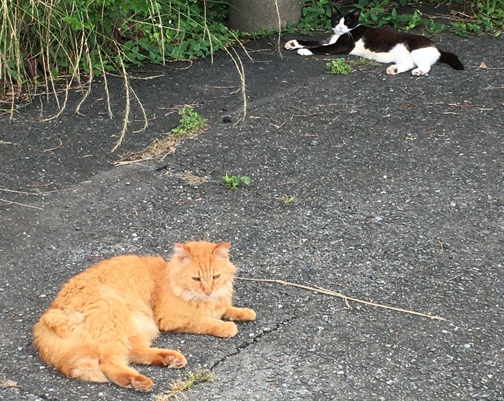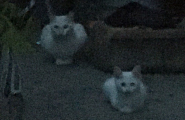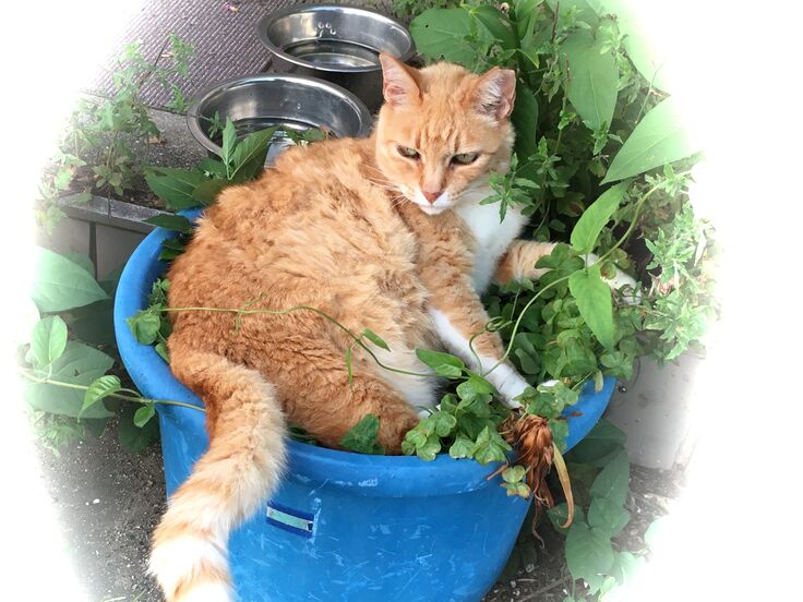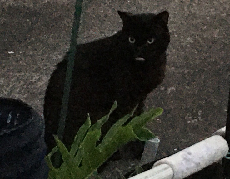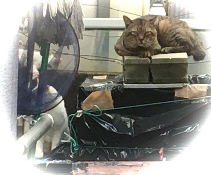昼間は直射日光を受けて焦げるので、この時間にしましたがやぶ蚊いるし猫いない。