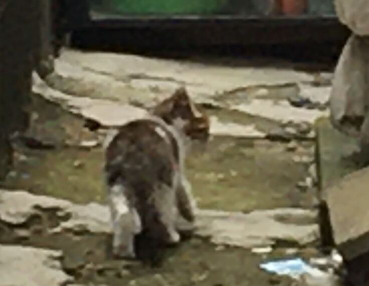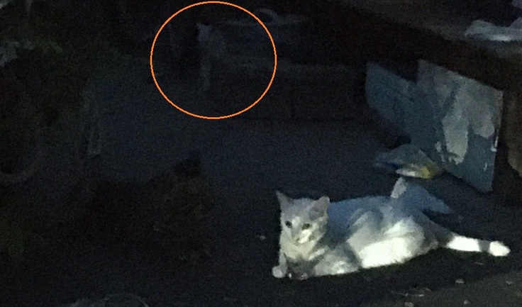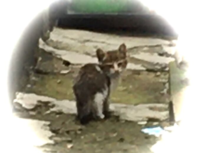 場所②周辺、昨日、パレットの下で鳴いていた子猫は、同じ場所にいました。
