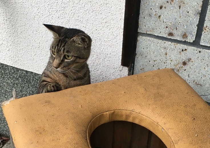 うちちか区の猫家族は姿を消し、母猫だけが別の家に潜んでいました。