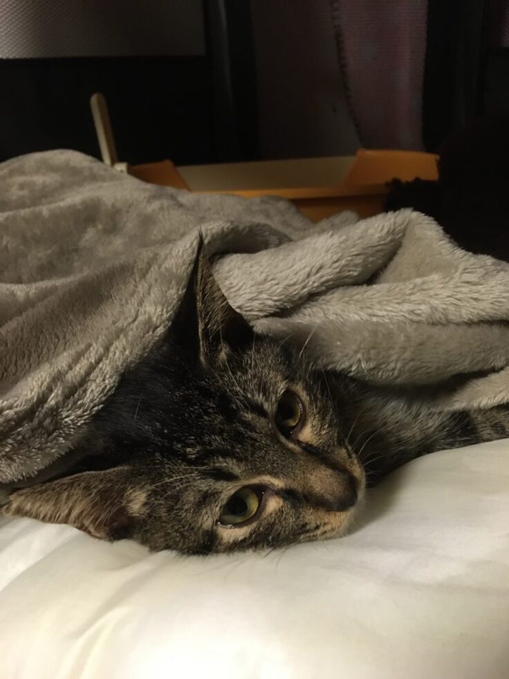 写真のキジトラ猫ドルはFIP(猫伝染性腹膜炎)を発症し、生死をさまよいましたが懸命な看護のかいあって奇跡的な復活を遂げました!