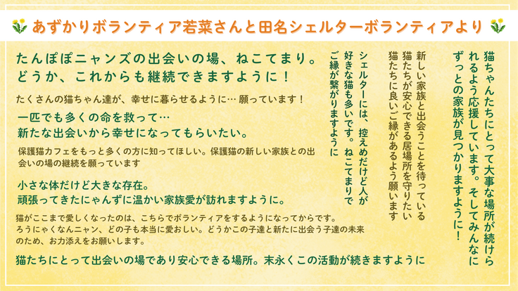 あずかりボランティア若菜さんと田名シェルターからの応援メッセージ