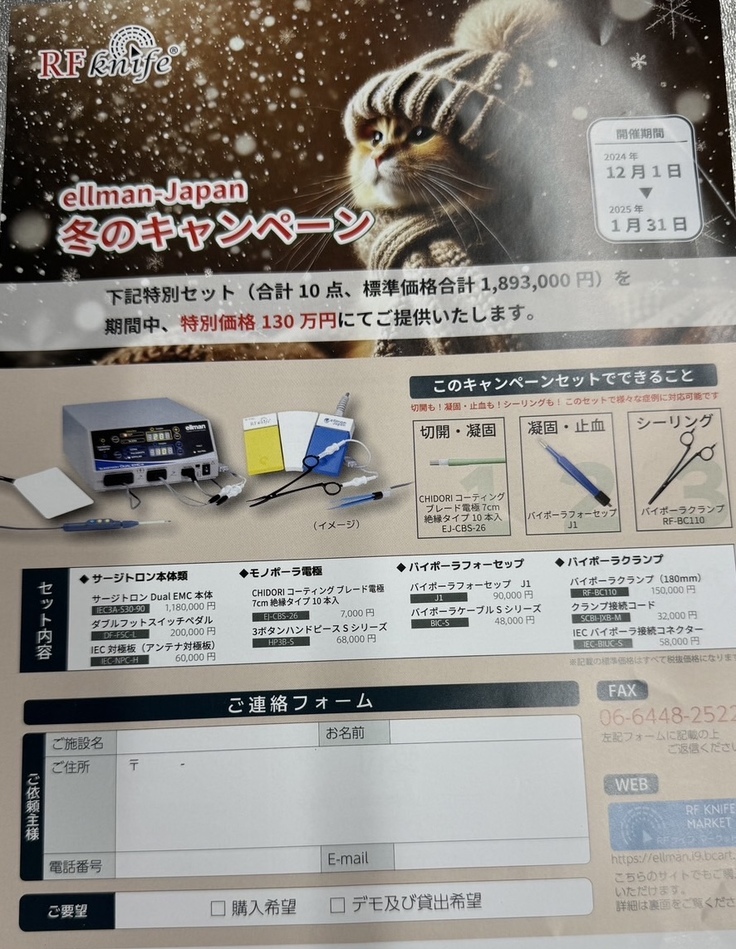 (たんぽぽの里開院の時に安価でお譲りいただいたのは20年以上の電気メスです)