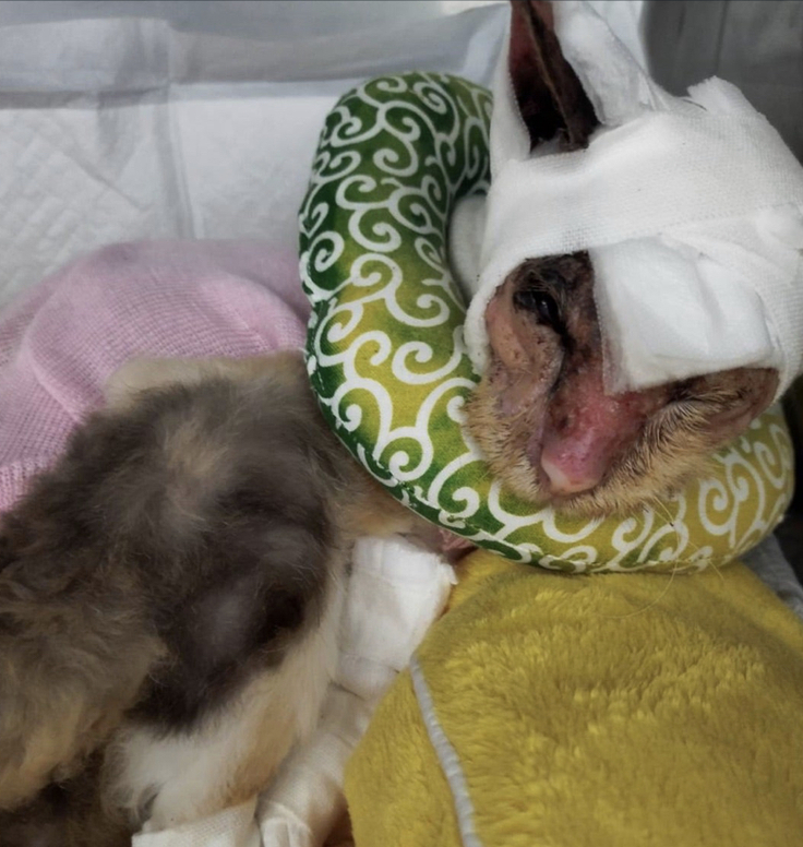 もともと白血病を持っており、体の強くないパピでした。今、皮膚が脆弱になり、顔周りの皮膚が次々と剥がれてしまい足や尻尾にまで及んでいます。