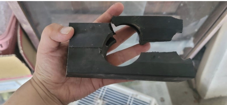 棒を使って子猫の状態を確認すると、上半身が何かに挟まってるようです。