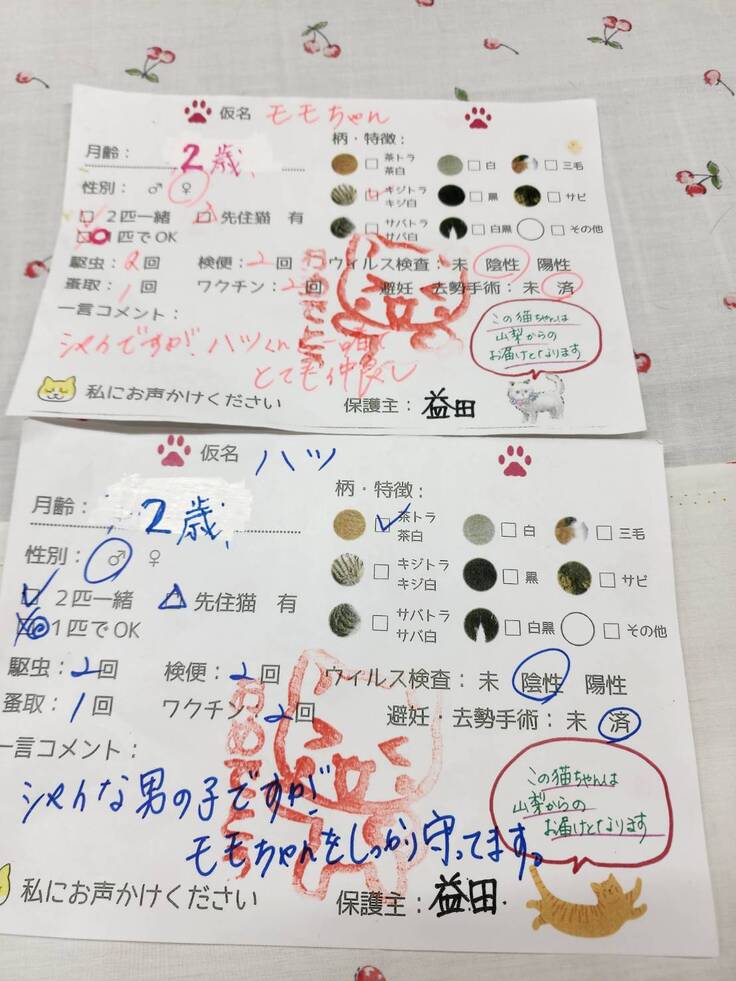 鶴田様(預かりボランティア様/モモちゃん&ハツくん)の応援メッセージ。そして、トライアル決定!!