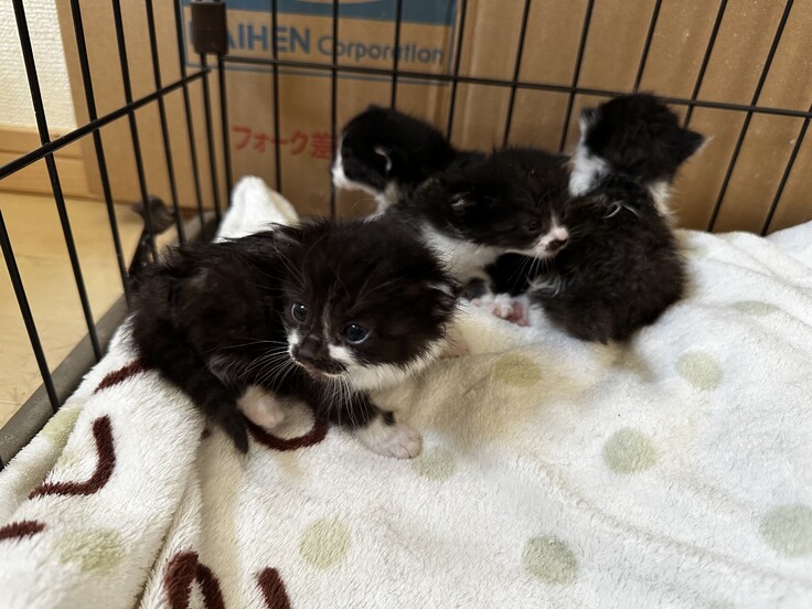 警察と連携していて、仔猫が捨てられていたと持ち込んでくる人がいたら私に連絡をくれることになっていて、段ボールに入れられて畑に捨てられていた仔猫4匹、1匹でポツンとさまよっていた仔猫など引き取って保護しています。